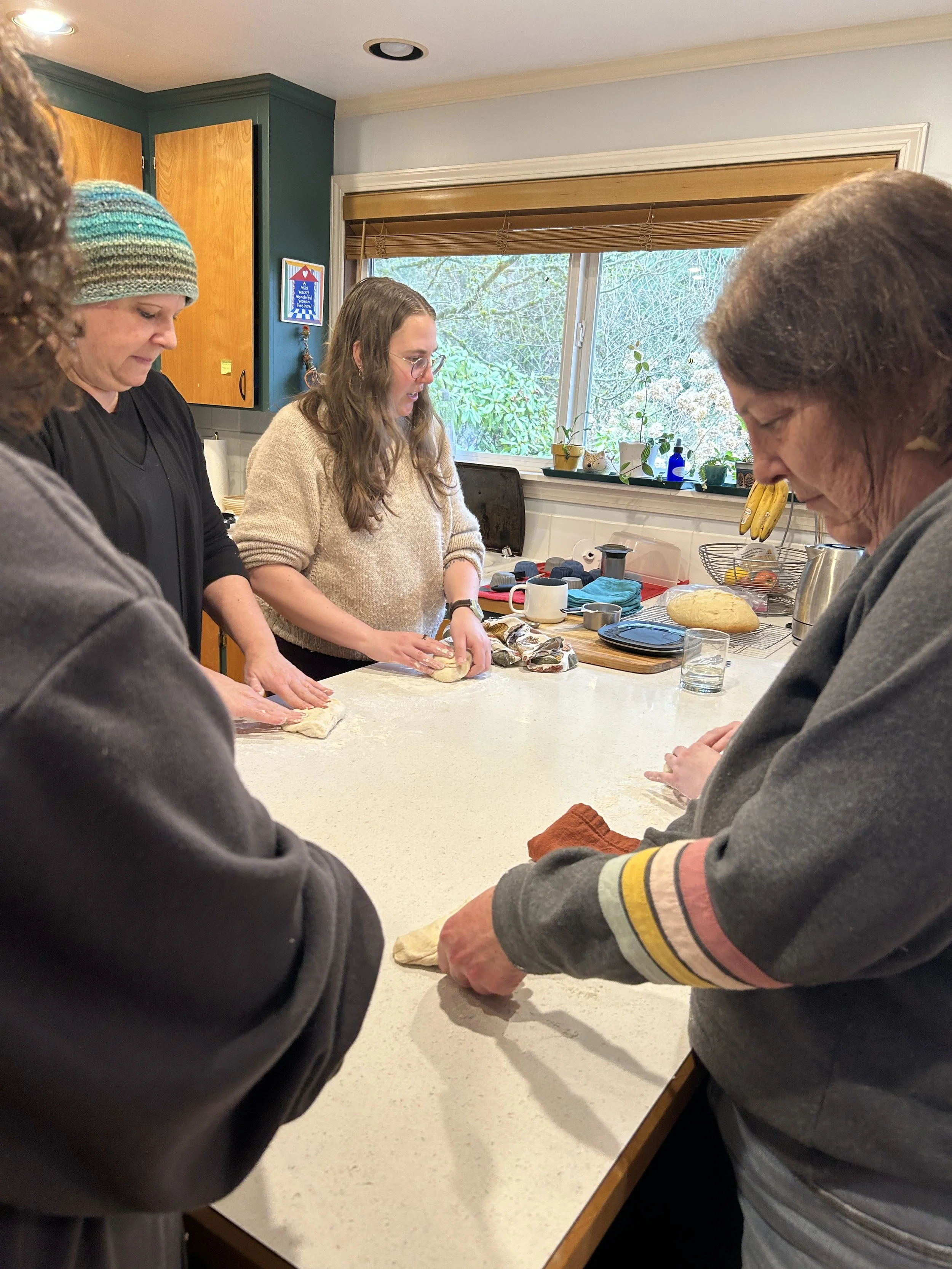 We cozied up inside in front of the fire as snow fell outside while Hannah Rose gave us introductory lessons in knitting and basic breadmaking. We all left with a bit of knitting knowledge, a mini loaf of crusty bread, and full hearts.